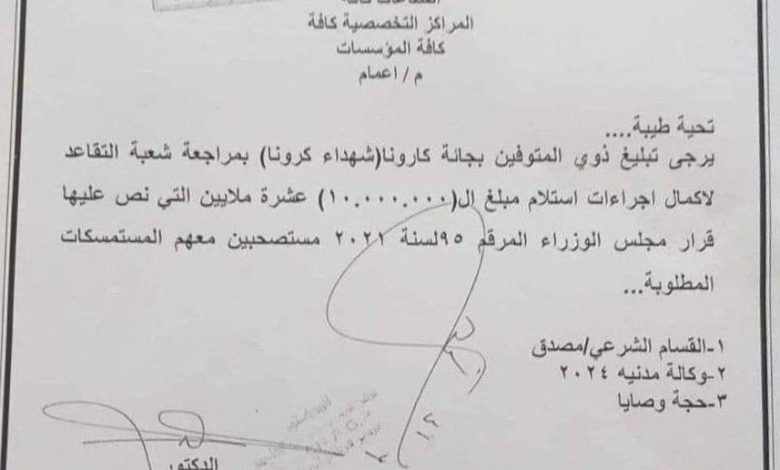 الرئيسية/محلي/التقاعد: الـ10 ملايين لضحايا كورونا تُمنح للمتوفين من منتسبي وزارة الصحة حصراً محلي التقاعد: الـ10 ملايين لضحايا كورونا تُمنح للمتوفين من منتسبي وزارة الصحة حصراً يناير 22, 2024 121 أقل من دقيقة فيسبوك تيلقرام يناير 22, 2024 121 أقل من دقيقة فيسبوك تيلقرام اظهر المزيد شاركها فيسبوك تيلقرام مشاركة عبر البريد طباعة
