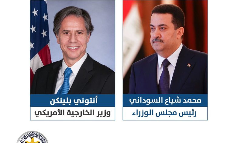 وذكر المكتب الاعلامي لرئيس الوزراء في بيان، ان “رئيس الوزراء محمد شياع السوداني، تلقى امس الثلاثاء، اتصالاً هاتفياً من وزير الخارجية الأمريكي انتوني بلينكن، جرى خلاله استعراض عدد من المواضيع والملفات في العلاقات الثنائية بين العراق والولايات المتحدة الأمريكية، وسبل تعزيزها، فضلاً عن التطرق إلى أهم التطورات على الساحتين الإقليمية والدولية”.