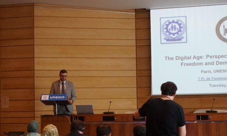 وقالت هيئة الإعلام والاتصالات في بيان: إن “رئيس هيئة الإعلام والاتصالات علي المؤيد شارك بورشة موسعة عن العصر الرقمي والحريات والديمقراطية في العراق في مقر اليونسكو بباريس، بحضور السفير العراقي لدى فرنسا وديع البتي وعدد من كبار المسؤولين التنفيذيين في منظمة اليونسكو”.